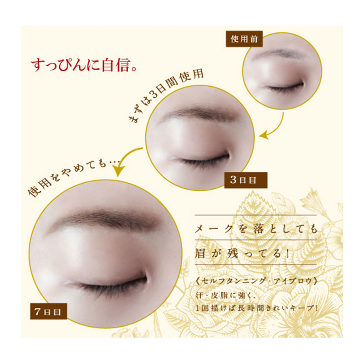 セルフタンニング成分が角質層に染着して、メークを落としても眉ラインをしっかりキープさせます。